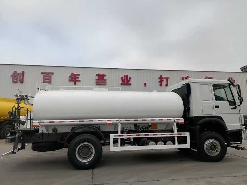 Top equipment: 12m³Water Tank Truck, tank volume is 12 cubic meters, the tank body thickness is 4mm, the head seal thickness is 4mm, with inner spacer plate, with a pump (Hangzhou Weilong water pump), equipped with front and rear spray, high-pressure water gun and rear working platform, with self-suction, self-flow and pressure discharge function, manual operation.